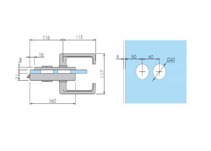 - 8 mm ile 10 mm arasında değişen kalınlıktaki camlara uygundur.