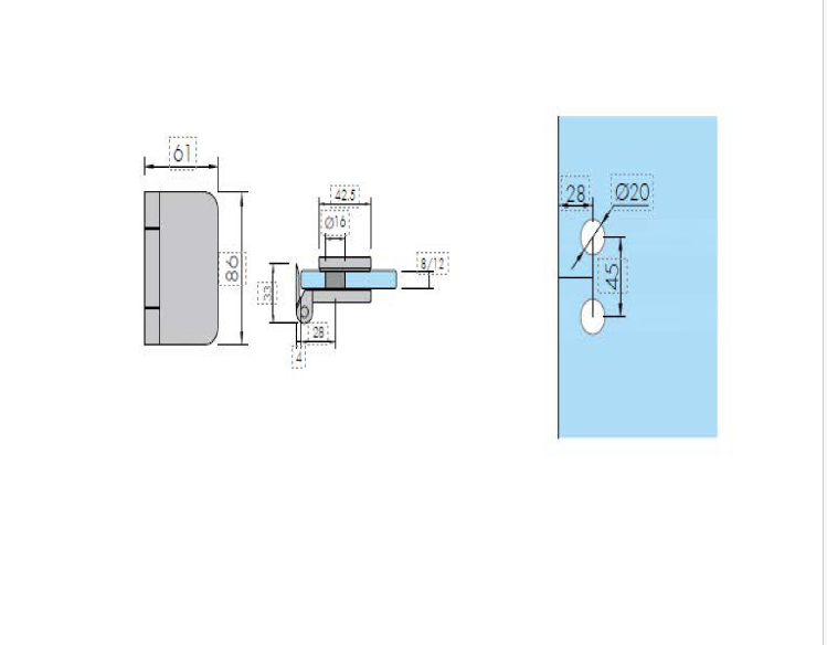 - 8 mm ile 10 mm arasında değişen kalınlıktaki camlara uygundur.